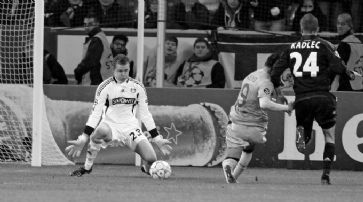 ![]() Nachspielzeit: Eine Minute.41. Minute: TOOOR! Endlich! Messi bedient Sanchez mit einem herrlichen Aussenristpass über die gesamte Abwehr der Gastgeber hinweg und der chilenische Internationale lässt sich nicht zweimal bitten und schiebt ein - 0:1.40. Minute: Es ist Messi, der ausführt, doch M. Friedrich kann per Kopf klären.39. Minute: Freistoss vom linken Strafraumeck! Messi und Alves stehen bereit...39. Minute: Selbst Weltfussballer Messi ist bisher kaum in Erscheinung getreten.36. Minute: Immer wieder beissen sich die Gäste die Zähne an der Defensive der Deutschen aus. Noch ist das nicht der FC Barcelona, der in der vergangenen Spielzeit die Champions League gewonnen hat.33. Minute: Leverkusen verteidigt mit elf Mann im eigenen Strafraum. Einzig die beiden Innenverteidiger Barças und V. Valdés befinden sich in der Hälfte der Katalanen.30. Minute: Der FCB ist drückend überlegen. Was jetzt noch fehlt sind Torchancen bzw. Tore.25. Minute: Adriano hält drauf... in die Wolken.24. Minute: Der Titelverteidiger aus Spanien hat zurzeit 78 Prozent Ballbesitz - ein Wahnsinnswert.20. Minute: Geduldig schiebt Barcelona das Spielgerät hin und her und wartet auf seine Chance.fussball.ch: Eine Gelbe Karte gegen Puyol wäre eine mit Folgen. Der Barça-Captain wäre im Rückspiel gesperrt. Selbiges trifft auf Leverkusens Kadlec zu.13. Minute: Das ging aber schnell, zu schnell für Leverkusen! Schwaab kann im letzten Moment vor dem einschussbereiten Messi klären.11. Minute: Freistoss für die Spanier aus relativ grosser Distanz: Alves versucht's direkt... drüber.fussball.ch: Nur als Zuschauer mit dabei sind bei Barça Spielmacher Xavi und Abwehrhühne Gerard Piqué.8. Minute: Rüdes Foul von Schwaab an Abidal. Ref Thomson zückt direkt den Gelben Karton - korrekter Entscheid.fussball.ch: Prominenz im Stadion: Lukas Podolski schaut sich den CL-Hit von der Tribüne aus an. Einen weiten Weg musste der Köln-Profi dazu nicht zurücklegen.2. Minute: Von der ersten Minute an lassen die Katalanen die Kugel laufen. Die Bayer-Fans quittieren dies mit einem Pfeifkonzert.Anpfiff: Los geht's. Barça ist in Ballbesitz.Vor dem Spiel: So wird gespielt... (siehe unten)Vor dem Spiel: Die Begegnung findet in der BayArena statt. Sie bietet 30'210 Fans Platz.Vor dem Spiel: Craig Thomson aus Schottland soll auf dem Rasen für Recht und Ordnung sorgen.Formationen: Bayer 04 Leverkusen: Leno; Corluka, Schwaab, M. Friedrich, Kadlec; Reinartz, Rolfes; L. Bender, Castro, Schürrle; R. Augusto. FC Barcelona: V. Valdés; Alves, Mascherano, Puyol, Abidal; Fabregas, Busquets, Iniesta; Sanchez, Messi, Adriano.