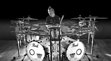 Tonmi Lillman hinter seinem Schlagzeug. /