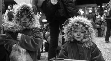 Zuschauer dicht gedrängt Die Zuschauer verfolgten den Umzug dicht gedrängt in den Lauben der Altstadt. Viele von ihnen waren verkleidet oder zumindest auffällig geschminkt.Konfetti gehört auch bei den kleinen «Löwen» dazu. (Archivbild) /