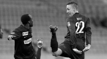 Leoni-Flop führt zum Ausgleich In der 73. Minute mussten die Zürcher dann nach einer unglücklichen Aktion von Goalie Johnny Leoni noch den Ausgleich einstecken. Leoni liess einen Flankenball von Stéphane Nater vor die Füsse von Servette-Verteidiger Rüfli fallen, der volley und mit etwas Glück ins Netz traf. Mathieu Béda und Jorge Teixeira hätten den Schuss auf der Torlinie beinahe noch wegspedieren können. Die Genfer liegen nach dem dritten Heimspiel in Folge ohne Niederlage weiterhin auf dem vierten Platz und auch der FCZ kann sich nach dem ersten Punktgewinn unter Interimstrainer Harald Gämperle weiterhin Hoffnungen auf den dritten Platz machen.Servette - FC Zürich 1:1 (0:1) Stade de Genève. - 9234 Zuschauer. - SR Bieri. - Tore: 45. Buff (Schönbächler) 0:1. 73. Rüfli (Flanke Nater, Fehler Leoni) 1:1. Ausgefallener Jubel von Ishmael Yartey (l.) und Torschütze Vincent Rüfli. /