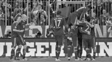 Bayern bleibt Dortmund auf den Fersen Bayern München verkürzt nach dem 2:1-Sieg gegen Hannover den Rückstand auf Leader Borussia Dortmund auf zwei Punkte. Der Titelverteidiger spielt erst am Sonntag in Köln. Für die Münchner waren Toni Kroos (36.) und der eingewechselte Mario Gomez (68.) erfolgreich; für die Gäste traf Didier Ya Konan. Krassimir Balakovs Einstand als Trainer beim Schlusslicht Kaiserslautern ist gründlich misslungen. Der Bulgare verlor mit den «Roten Teufeln» in Freiburg 0:2. Mit 17 Spielen ohne Sieg in Folge hat der FCK, für den der Klassenerhalt in immer weitere Ferne rückt, zudem einen Negativrekord in seiner Vereinsgeschichte aufgestellt.Last-Minute-Ausgleich durch Augsburg Punkte im Abstiegskampf sammelte dagegen Hertha Berlin, das in Mainz zu einem 3:1-Erfolg kam. Zwar bleibt das Team von Otto Rehhagel auf dem vorletzten Platz, ist aber nur noch einen Punkt vom rettenden 15. Platz entfernt. Aufsteiger Augsburg kam dank einem Tor von Paul Verhaeg in der Nachspielzeit zu einem 1:1 bei Werder Bremen. Niclas Füllkrug (61.) hatte Werder mit seinem ersten Bundesliga-Tor in Führung gebracht. Durch die Punktgewinne der Konkurrenten fiel der Hamburger SV (am Freitag 1:2 in Wolfsburg) auf Relegationsplatz 16 zurück.Resultate: SC Freiburg - Kaiserslautern 2:0. Werder Bremen - Augsburg 1:1. Bayern München - Hannover 96 2:1. Borussia Mönchengladbach - Hoffenheim 1:2. Mainz - Hertha Berlin 1:3. Schalke 04 - Bayer Leverkusen 2:0. Rangliste: 1. Borussia Dortmund 59. 2. Bayern München 57. 3. Schalke 04 53. Die Bayern-Stars haben allen Grund zum Jubeln. /