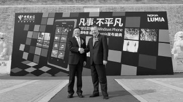 Erste CDMA-Smartphones mit Windows Phone für China Auch in China konnte Nokia in den letzten Monaten nicht mit der iPhone- und Android-Konkurrenz mithalten.Nokia-Konzernchef Stephen Elop und der Vorsitzende der China Telecom Wang Xiaochu. /