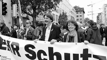 ![]() SGB-Präsident Paul Rechsteiner am Marsch durch die Zürcher Innenstadt. /