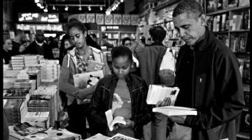 Würden ungleichbehandlung nicht begreifen: Obama-Töchter mit Vater beim Buch-Shopping. /