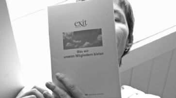 Eine Frau studiert die Broschüre der Sterbehilfe-Organisation Exit. /