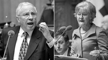 Vertreter aller Parteien unzufrieden Dafür, dass er in der Öffentlichkeit über die Abkehr von der Euro-Untergrenze debattierte, wurde Blocher hart angegangen. Die SVP könne man nicht mehr ernst nehmen, sagte Susanne Leutenegger Oberholzer von der SP. Die SVP und ihnen nahe stehende Kreise hätten eine regelrechte Kampagne gegen die Euro-Untergrenze geführt, sagte sie.Würde diesen Stimmen gefolgt, würden tausende Arbeitsplätze verloren gehen.Christoph Blocher und Susanne Leutenegger Oberholzer im Parlament. /