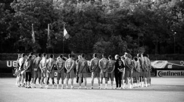 Schweigeminute für Thierry Roland beim Training der Franzosen. / Foto: EQ Images
