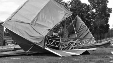 Durch den heftigen Sturm wurde das Zelt aus der Verankerung gerissen. /