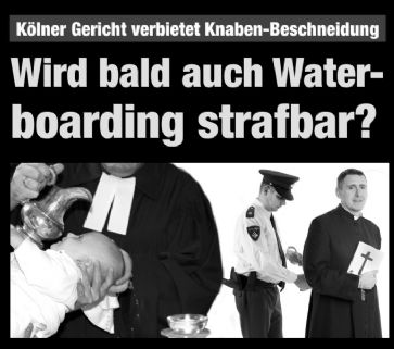 Wann wird die Taufe strafbar?Ein Kölner Gericht hat die rituelle Beschneidung von Knaben als strafbare Körperverletzung bewertet. Verurteilen Sie mit!Quelle: Nebelspalter / Samstag, 14. Juli 2012 / 08:38 h