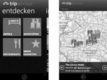 TripAdvisor Bei TripAdvisor vom TripAdvisor LLC handelt es sich um eine App zum Planen der Reise. Diese liefert dem Nutzer eine übersichtliche Liste mit Preisen, Bildern, Berichten und Bewertungen zu Hotels, Sehenswürdigkeiten und Restaurants. Dabei kann sich der Nutzer eine eigene Liste mit den besten Angeboten zusammenstellen und sich diese über den Menüpunkt «Meine Favoriten» anzeigen lassen. Über die Suche von TripAdvisor lassen sich die gewünschte Reiseziele mit Wegbeschreibung finden, deren Position über eine Karte dargestellt wird. Ausserdem kann mit der «In meiner Nähe»-Funktion die nähere Umgebung beispielsweise nach Hotels durchsucht werden - diese werden auf einer Karte mit kleinen Icons aufgeführt. Mit der Auswahl eines Icons erhält der Nutzer dann weiterführende Infos wie Kontaktmöglichkeiten, Bewertungen anderer Hotelbesucher inklusive Bilder sowie die Zimmerpreise des jeweiligen Hotels.CheckMyTrip CheckMyTrip von Amadeus s.a.s. ist eine App, mit der der Nutzer zum Beispiel Informationen zu den Buchungen von Flügen und Hotels aufs Smartphone oder Tablet erhält. Dabei wird das Buchungssystem Amadeus von allen gängigen Fluglinien oder Reisebüros verwendet, wodurch mit CheckMyTrip direkt auf den Status der Buchungen zugegriffen werden kann und der Nutzer somit immer auf dem aktuellsten Stand ist. Für die Anmeldung und Abfrage der Buchungsinformationen wird die PNR (Reservierungsnummer) benötigt - zusätzlich muss der Reisende seinen Namen angeben. Mit der App lässt sich ausserdem das aktuelle Wetter des gewünschten Zielortes abfragen und es steht eine Karte für den jeweiligen Standort zum Abruf bereit. Nun erfahren Sie, welche besonderen Features die Apps Translator und Wikitude dem Windows-Phone-Nutzer bieten.Wikitude liefert zusätzliche Informationen über die Kamera Ein typisches Reisetool ist die kostenlose App Wikitude. Die kleinen Programme können beispielsweise bei der Planung, bei der Buchung eines Hotels oder Flugs sowie bei der Suche von Sehenswürdigkeiten helfen. /