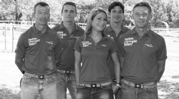 Das Swiss Olympic Team, Springreiten: Pius Schwizer, Werner Muff, Ersatzreiterin Clarissa Crotta, Steve Guerdat und Paul Estermann (v.l.) /