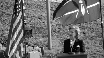 ![]() Anschlag am Vortag Am Vorabend des Clinton-Besuchs wurden bei einem Anschlag ein Mensch getötet und mehrere andere verletzt. Es handelte sich nach Polizeiangaben um einen Selbstmordanschlag, bei dem der Täter selbst ums Leben kam. Kenia leidet seit dem Einmarsch der kenianischen Militärs im Nachbarland Somalia 2011 unter den Terroranschlägen somalischer Extremisten. Unter anderem bekämpft die radikal-islamische Miliz Al-Schabaab die somalische Zentralregierung in Mogadischu und will einen islamischen Gottesstaat errichten. Clinton war vor Kenia in Uganda, im Südsudan und im Senegal. Weitere Stationen der elftägigen Reise sind Malawi, Südafrika und Ghana, wo die Aussenministerin zur Beerdigung des Ende Juli gestorbenen Präsidenten John Evans Atta Mills erwartet wird.