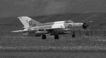 Zum Wummern schwerer Geschütze ist darauf ein Kampfjet zu sehen, der plötzlich in Flammen aufgeht, ins Trudeln gerät und eine Rauchfahne hinter sich herzieht. «Gott ist gross! Ein MiG-Kampfjet ist in der Stadt Mohassen getroffen worden», hört man einen Rebellen rufen. Später zeigte der Fernsehsender Al-Arabija auch ein Video, das den Piloten in Rebellenhand zeigen soll. Die Echtheit der Filme liess sich nicht überprüfen. Das Staatsfernsehen berichtete dagegen, ein Bergungsteam sei unterwegs. Der amtlichen Nachrichtenagentur SANA zufolge konnte sich der Pilot mit dem Schleudersitz retten. Rebellen wollen Flagkanone haben In Oppositionskreisen in der Region hiess es, die Rebellen hätten den Jet mit Flugabwehrgeschützen abgeschossen. Museumsreif: Eine MiG-21. (Archivbild) /
