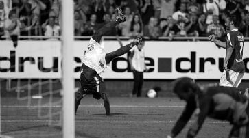 Schützenwiese. - 4000 Zuschauer. - SR Carrel. - Tor: 70. Bengondo 1:0. - Bemerkung: 60. Tor von Bengondo (Winterthur) wegen Offside aberkannt. Rangliste: 1. Winterthur 12. 2. Lugano 10. 3. Torschütze Patrick Bengondo schlägt Rad vor Freude. /