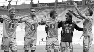 Stade de Genève. - 6165 Zuschauer. - SR Amhof. - Tore: 37. Stahel (Rangelov) 0:1. 65. Luzerns Florian Stahel, Janko Pacar, Hekuran Kryeziu, Adrian Winter und Daniel Gygax jubeln nach dem Sieg. /