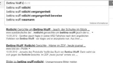 Im Fall Google will Bettina Wulff verhindern, dass bei Eingabe ihres Namens automatisch Suchbegriffe wie «Rotlichtvergangenheit» auftauchen. Der Konzern wies ihre Vorwürfe am Samstag aber zurück: Google nehme keinen Einfluss auf die Suchbegriffe, sagte Unternehmenssprecher Kay Oberbeck. Bald ein Buch Die Schlagzeilen über das Ehepaar Wulff dürften kaum abreissen. Bis ihr Mann im Zuge der Affäre um Hauskredite und Gratisurlaube Mitte Februar seinen Hut nahm, hatte sich Bettina Wulff zunächst mit Stellungnahmen zurückgehalten - möglicherweise, um die Aufmerksamkeit nicht noch stärker auf das Paar zu lenken. Nun plant sie jedoch jenseits des juristischen Kampfes auch noch eine publizistische Offensive. Bereits in diesem Monat soll ein Buch über ihr Leben erscheinen - die neuen Schlagzeilen dürften der Auflage nicht schaden. Die Ex-«First Lady» hat sich offensichtlich auch beruflich neu orientiert und mit einer PR-Agentur selbstständig gemacht. «Ich fühle mich frei, weil ich mein eigener Chef bin», sagte sie dem Magazin «Focus».