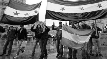 ![]() Gefordert wurde zudem ein sofortiges Aufenthaltsrecht für syrische Flüchtlinge in der Schweiz. «Stoppt das Blutvergiessen», stand auf einem Transparent zu lesen, «Freiheit für Syrien» auf einem weiteren. Auf dem Bundesplatz und einem Marsch durch Teile der Altstadt skandierten die Teilnehmer «Krieg gegen Syrien». Zur Kundgebung aufgerufen hatten Exilsyrer zusammen mit verschiedenen linken Bewegungen und Menschenrechtsgruppen.