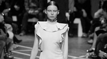 Kreativdirektor Riccardo Tisci besann sich mit den Stoffen, die er wählte, auf das Erbe des Hauses. Schlichte Linien in Taft, edle Seide und Radzimir verzierte der Designer mit überdimensionalen Rüschen und erinnerte damit an seine Wurzeln und den Hang zu Gothic-Mode.