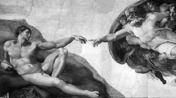 Menschliche Phantasie: Adam und Gott in der Sixtinischen Kapelle von Michelangelo. /