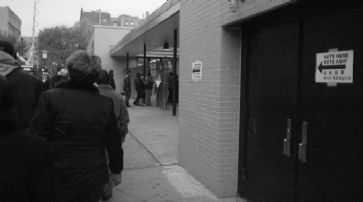 Auszählen könnte länger dauern Insgesamt stehen die Wahlen unter dem Einfluss von «Sandy». So werde der Ausfall des Postdienstes wahrscheinlich das Eintreffen von Briefwahl-Stimmen verzögern.Warteschlange vor einem Wahllokal in New York City. /