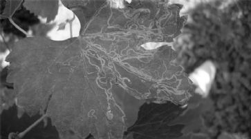 Die herausgefressenen Blattschichten haben keinen Einfluss auf Traubenertrag und -reifung. /