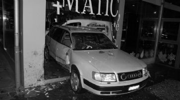 Der 20-Jährige hatte wegen übersetzter Geschwindigkeit die Kontrolle über den Audi seines Kollegen verloren. Der Wagen drehte sich um 180 Grad, schleuderte gegen den Ausstellungsraum einer Mercedes-Garage, durchschlug rückwärts das Schaufenster und kam schliesslich im Schauraum zum Stillstand.