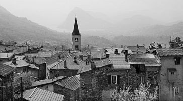 Blick über die Gemeinde Sonvico Richtung Lago di Lugano. /