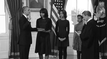 An der kurzen Zeremonie im «Blue Room» nahmen nur Obamas Ehefrau Michelle und seine beiden Töchter Malia und Sasha teil. Abgenommen wurde Obama der Eid vom obersten Richter des Landes, John Roberts.