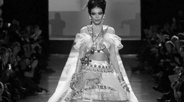 Der französische Modestar kombinierte bekannte 'Gaultier'-Markenzeichen mit indischen Inspirationen für seine neueste Haute-Couture-Kollektion, die er gestern dem beeindruckten Publikum in Paris vorführte. Das grosse Finale des ewigen Enfant Terrible der Fashion-Welt sprach für sich, als ein Model in einem Hochzeitskleid den Laufsteg entlang stolzierte. Der Umfang der Robe war überdimensional gross und als die Schöne ihre Rockschösse lüftete, huschten gleich eine ganze Reihe von Kindern heraus, um über den Catwalk zu stürmen. Das indische Thema spiegelte sich auch in der Kulisse wieder, die von orangen, gelben und roten Patchwork-Lichtern angestrahlt wurde.