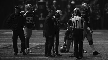 Schiedsrichter und Spieler im Halbdunkel auf dem Spielfeld in New Orleans. /