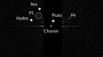 Pluto und seine kleinen Monde: P4 und P5 brauchen noch Namen. /