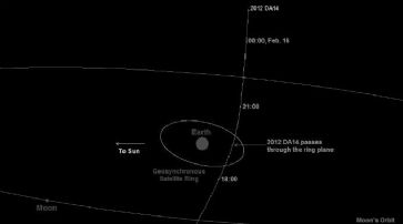 Asteroid 2012 DA14 passiert die ErdeNew York - Diesmal gabs keine Kollision: Der Asteroid 2012 DA14 hat am Freitagabend die Erde passiert. Um 20.24 Uhr Schweizer Zeit hatte der Himmelskörper mit 27'800 Kilometern seinen erdnächsten Punkt erreicht und entfernte sich danach wieder.bert / Quelle: sda / Freitag, 15. Februar 2013 / 21:57 h