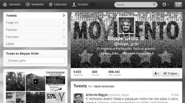 Twitter-Seite von Beppe Grillo: Bald 900'000 Follower. /