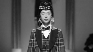 An das Thema schloss sich eine Auswahl von reiterlich anmutender Kleidung an: Die Models trugen übergrosse Reiterhüte und blinkende goldene Ohrringe, die ihre roten und grünen Blazer sowie die engen, mit Gold verzierten Reiterhosen perfekt ergänzten. Passend dazu waren die Haare der Grazien in Pferdeschwänzen zusammengehalten.