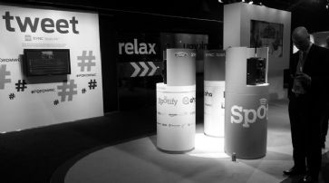Der Spotify-Ausstellungsstand am Mobile World Congress in Barcelona. /