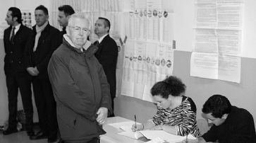 ![]() Silvio Berlusconi liegt mit seinem rechten Bündnis ganz knapp hinter dem Mitte-Links-Bündnis. /