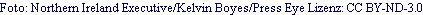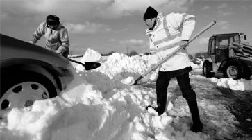 Danny Kennedy, Verkehrsminister in Nordirland, beim Schneeschaufeln. /