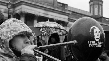 Zu dem von einem hohen Aufgebot an Sicherheitskräften begleiteten Protest am Trafalgar Square kamen trotz Regens neben ehemaligen Minenarbeitern, die in den 80-er Jahren gegen die Politik der «Eisernen Lady» gestreikt hatten, auch Linken-Aktivisten und Studenten.