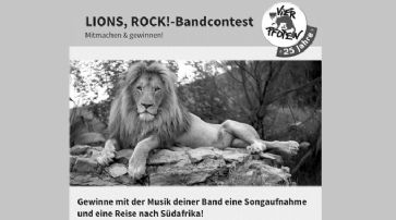 LIONS, ROCK! «Vier Pfoten» startet mit Band Contest in den SommerZürich - Bands aus Österreich, Deutschland und der Schweiz aufgepasst - die internationale Tierschutzorganisation «Vier Pfoten», die in diesem Jahr ihr 25-jähriges Bestehen feiert, startet einen breit angelegten Band-Contest.li / Quelle: Vier Pfoten / Dienstag, 14. Mai 2013 / 18:44 h