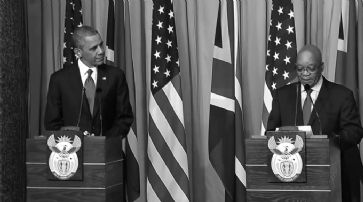 ![]() Nach Angaben seiner Familie wird er künstlich beatmet. Er kann demnach aber die Augen öffnen und reagiert auf Berührungen. Seit Tagen strömen unzählige Anhänger der südafrikanischen Ikone zu der Klinik, um Bilder zu hinterlegen und für Mandela zu beten. Auf dem Universitätscampus im Township Soweto nahe Johannesburg würdigte Obama Mandela am Samstag als Vorbild für die südafrikanische Jugend. Vor dem Campus protestierten rund 300 Menschen gegen Obamas Besuch und die US-Aussenpolitik. Die Polizei ging mit Blendgranaten und Gummigeschossen gegen die Menge vor. Obama hält sich insgesamt eine Woche in Afrika auf. Südafrika ist nach Senegal die zweite Etappe seines Afrikabesuchs. Am Montag begibt er sich nach Tansania.