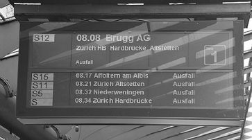 Stromausfall in Zürich - S-Bahn erneut gestörtZürich - Die S-Bahn-Züge zwischen Stadelhofen und Stettbach verkehren wieder durchgehend, wie die SBB mitteilten. Nach einem Stromausfall im Zürichbergtunnel konnte die Strecke kurz nach 9 Uhr wieder für den Bahnverkehr freigegeben werden.bert / Quelle: sda / Donnerstag, 18. Juli 2013 / 09:08 h