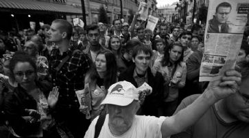 ![]() Die Staatsanwaltschaft legte nach dem Urteil überraschend Beschwerde gegen Nawalnys sofortige Inhaftierung ein und argumentierte, dass Nawalny unter Auflagen in Freiheit bleiben müsse, solange das Urteil nicht rechtskräftig sei. Nawalny-T-Shirts Ein russisches Gericht setzte den Oppositionellen daraufhin am Freitag bis zum Ende seines Berufungsverfahrens auf freien Fuss. Das Gericht erklärte, dass ihm durch den Verbleib in Haft das Recht genommen würde, bei der Bürgermeisterwahl in Moskau anzutreten. Am Samstagvormittag kam er per Nachtzug gemeinsam mit seiner Frau Julia in Moskau an. Bei seiner Ankunft wurde Nawalny von hunderten Anhängern wie ein Held begrüsst. Die Menge rief seinen Namen, viele hielten Blumen in den Händen und trugen T-Shirts mit «Nawalny» oder «Nawalnys Bruder» als Aufdruck. In einiger Entfernung waren Polizisten stationiert, die Nawalnys Ankunft überwachten.