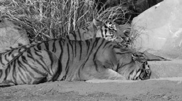 Eine ideale Umgebung für die Tiger Riwa erkundete als erste vorsichtig die neue Umgebung, Tomi folgte nach.Riwa erkundete als erste vorsichtig die neue Umgebung, Tomi folgte nach. /