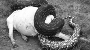 In Nigeria verschlingen die grossen Felsenpythons auch Hunde und Ziegen. /
