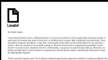 «Ich sehe mich gezwungen, eine schwierige Entscheidung zu fällen - entweder mitschuldig an Verbrechen gegen das amerikanische Volk zu werden oder zehn Jahre harte Arbeit aufzugeben und Lavabit zu schliessen», erklärte der Besitzer des E-Mail-Dienstes «Lavabit», Ladar Levison, auf der Internetseite des Unternehmens.