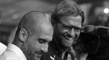 Die Bundesligagiganten unter sich: Bayern-Trainer Pep Guardiola und BVB-Coach Jürgen Klopp. /