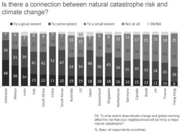 Verbreitete Sorgen um Klimawandel In allen untersuchten Ländern sehen überwiegende Mehrheiten einen Zusammenhang zwischen Klimawandel und Naturkatastrophen. Acht von zehn Personen fühlen sich durch das Risiko, das der Klimawandel für die örtliche Gemeinschaft darstellt, bedroht und sagen, es sei wahrscheinlich, dass ihre Heimat oder die Nachbarschaft von einer grossen Naturkatastrophe als Folge heimgesucht werden. Sechs von zehn Personen meinen, die Auswirkungen des Klimawandels auf Naturkatastrophen seien enorm. Dies deutet darauf hin, dass viele die Herausforderung der Bekämpfung des Klimawandels und der globalen Erwärmung als eine wichtige Massnahme zur Risikominderung sehen. Die Besorgnis um die lokalen Auswirkungen des Klimawandels ist vor allem in den Wachstumsmärkten stark ausgeprägt. In Indonesien sagen 96 Prozent, dass der Klimawandel das Risiko für ihre Nachbarschaft erhöht und 48 Prozent meinen, dies geschehe «in hohem Masse». In Mexiko (92% / 38%), Indien (86% / 38%) und China (92% / 21%) verbinden grosse Mehrheiten natürliche Katastrophenrisiken ebenfalls mit Klimawandel. Gastautor David Bresch ist Head Sustainability bei Swiss Re. /