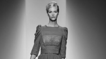 Ein gelbes Ensemble mit auffälliger Häkelei war züchtig bis zum Hals geschlossen, im Rockbereich dagegen durch leichte Transparenz mit einem sexy Touch versehen. Gegen alle modischen Regeln verstossend, stolzierten die Models in High Heels zu weissen Söckchen über den Laufsteg, was ungewöhnlich, aber niedlich wirkte. Streng, mit einem Hauch sexy, war das Motto der Kollektion, zu hoch geschlossenen Oberteilen wurde viel Bein gezeigt und Schuhe mit schwindelerregend hohen Absätzen garantierten einen rassigen Look.
