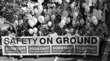Die Demonstrierenden fordern keine Südanflüge und weniger Südstarts. /