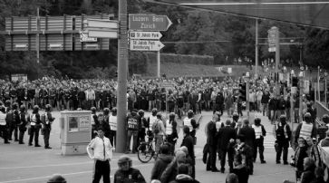Unterbruch in Basel wegen «Greenpeace-Seilschaft»Unmittelbar nach dem Anpfiff der Champions-League-Partie FCB - Schalke (Endstand 0:1, 56. Draxler) sorgten Aktivisten von «Greenpeace» mit einer waghalsigen Aktion für einen mehrminütigen Unterbruch.fest / Quelle: Si / Dienstag, 1. Oktober 2013 / 21:40 h